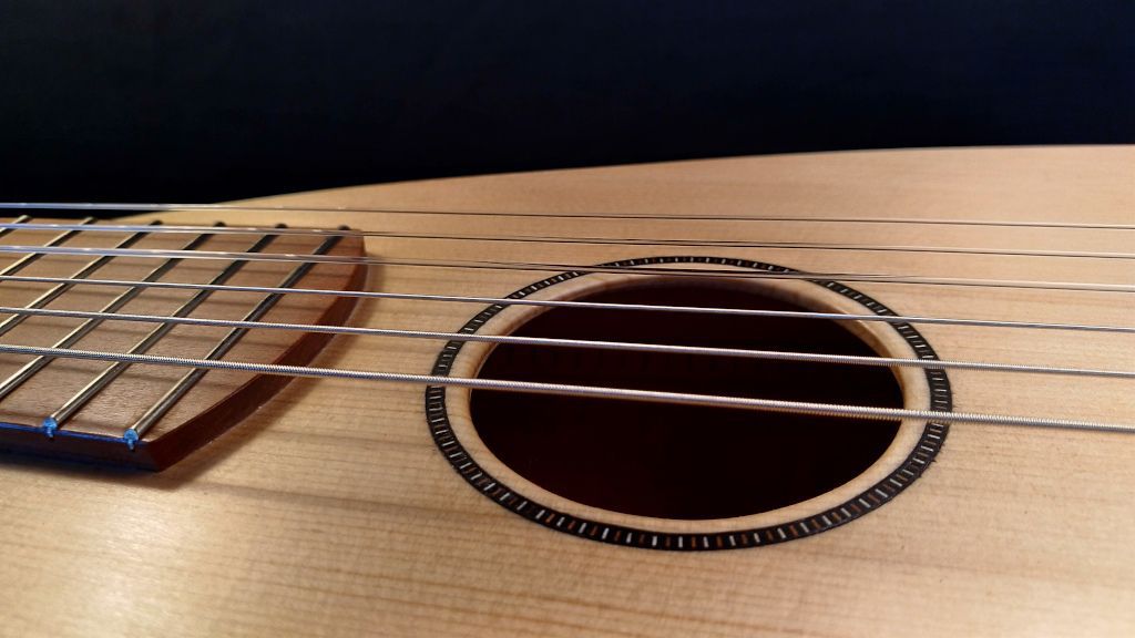 Ensuite, il commence souvent par réaliser la marqueterie et les décorations qui viendront embellir la rosace, les filets ou encore la tête de l’instrument. Ce travail d’orfèvre, c’est un peu sa ‘griffe’, sa marque de fabrique. Il adore faire ça et y met beaucoup de temps et de talent, même si, au final, cela n’influe pas sur le son de l’instrument.