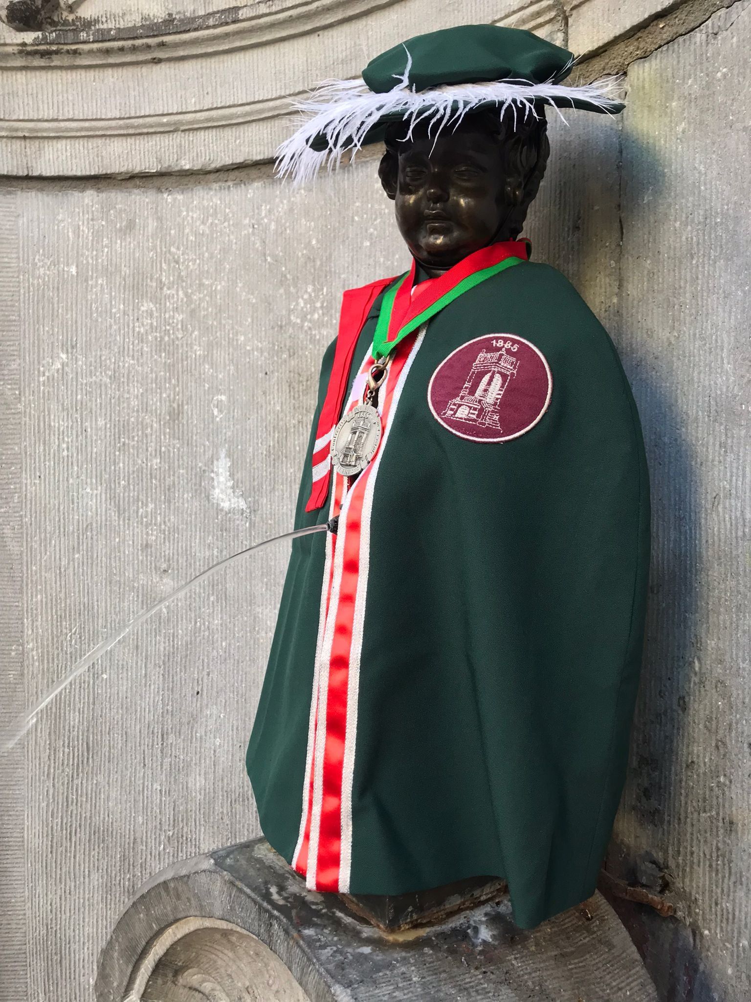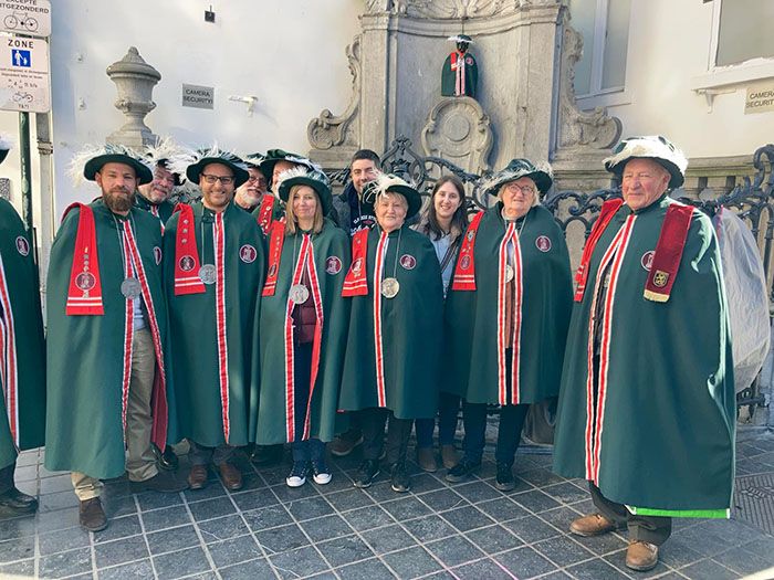 En marge du Chapitre, ce vendredi 18 mars, La Confrérîye avait rendez-vous avec Manneken-Pis. Quel plaisir de le voir arborer notre costume de parade sous un beau soleil.